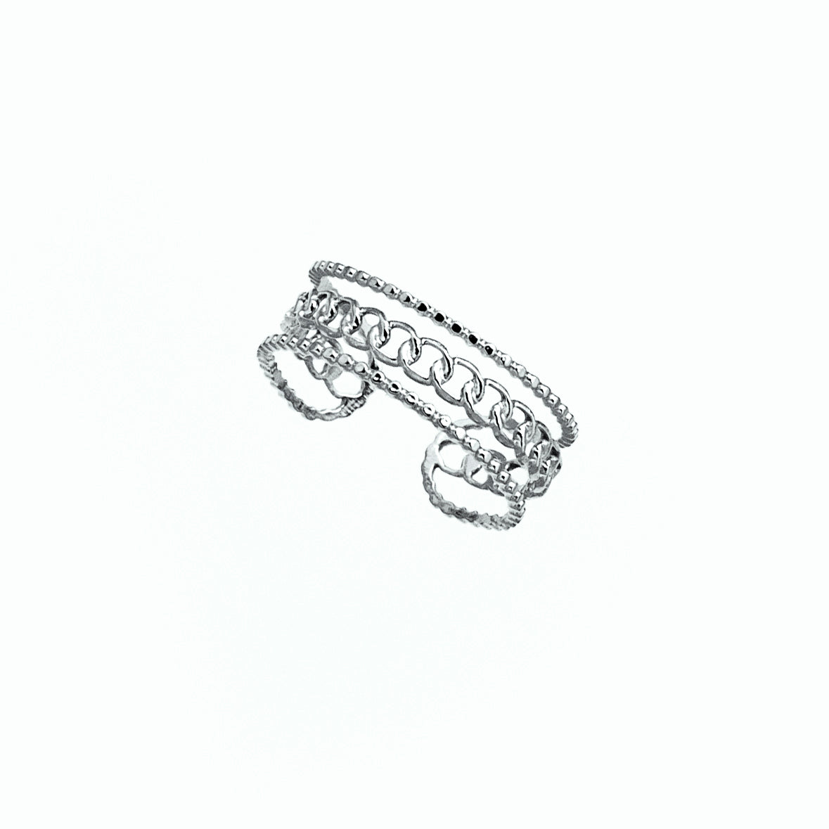 Alineado con los mejores estándares de calidad, este anillo de acero inoxidable presenta un original diseño en cadena ajustable, lo que lo hace perfecto para aquellos que buscan el equilibrio entre un estilo clásico y un toque de innovación. El acero utilizado, dura y resistente, posee un brillo que refleja la luz característico de este material. Esta joya es una excelente alternativa para aquellos a los que les gusta llevar cosas únicas sin que se les escape el estilo y elegancia.